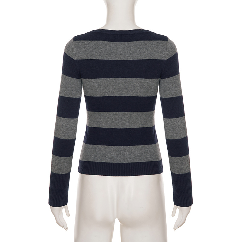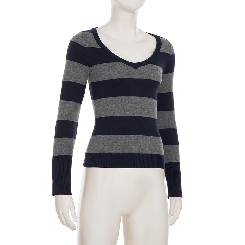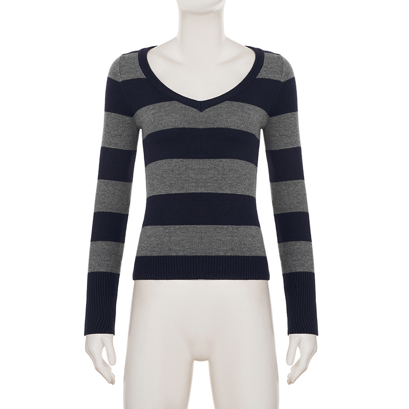 Amalie V-neck striped long sleeve sweater