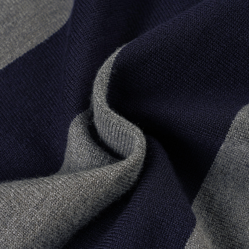 Women’s pullover sweater made from 100% polyester fabric. Designed with a V-neckline, long sleeves, and a striped pattern, this sweater features a fitted silhouette and short-length cut. The lightweight construction supports everyday wear during mild to cool weather.