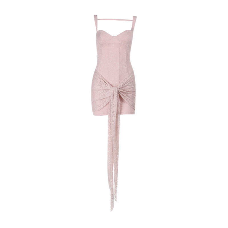 Women’s short-length dress made from a polyester and spandex blend fabric. Designed with a one-shoulder neckline and sleeveless construction, this dress features an open back detail, adjustable shoulder straps, and a high-waist design. The pullover style and solid color finish support everyday and occasion wear.