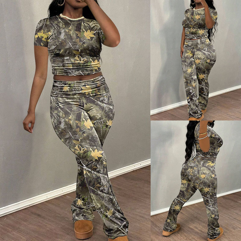 Casual Printed Women's T-Shirt and Pants Set
