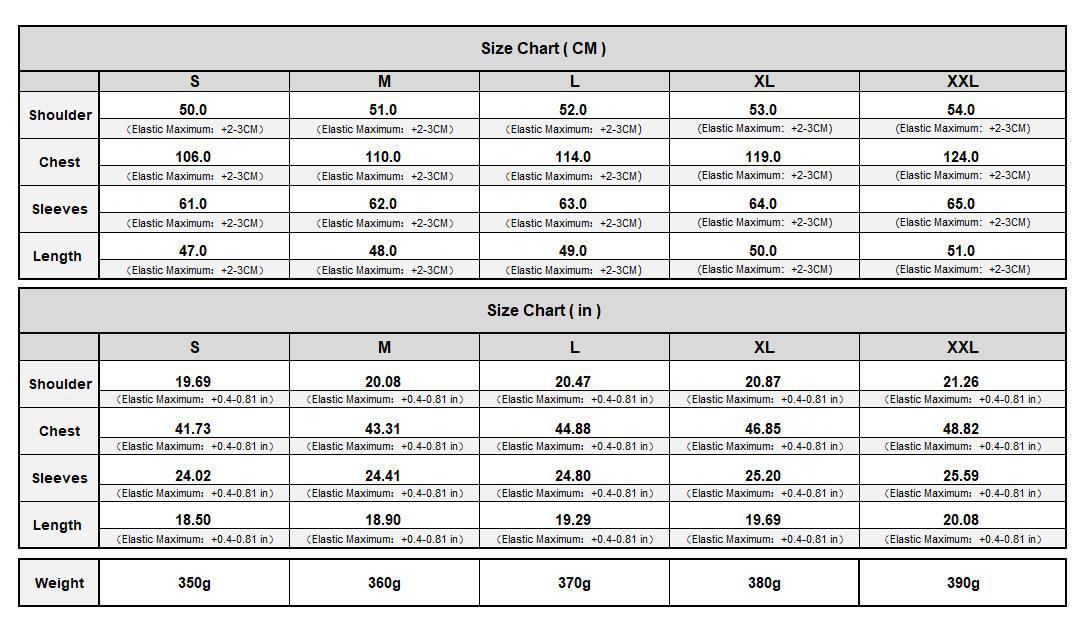 | Size | Bust (cm) | Jacket Length (cm) | Sleeve Length (cm) | Fit Description |