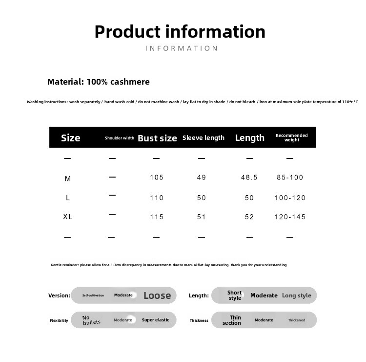 Pure Cashmere: 100% cashmere material for superior softness and warmth