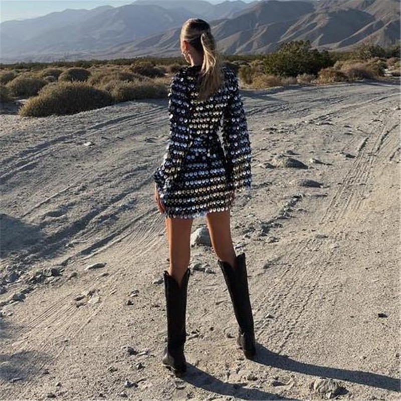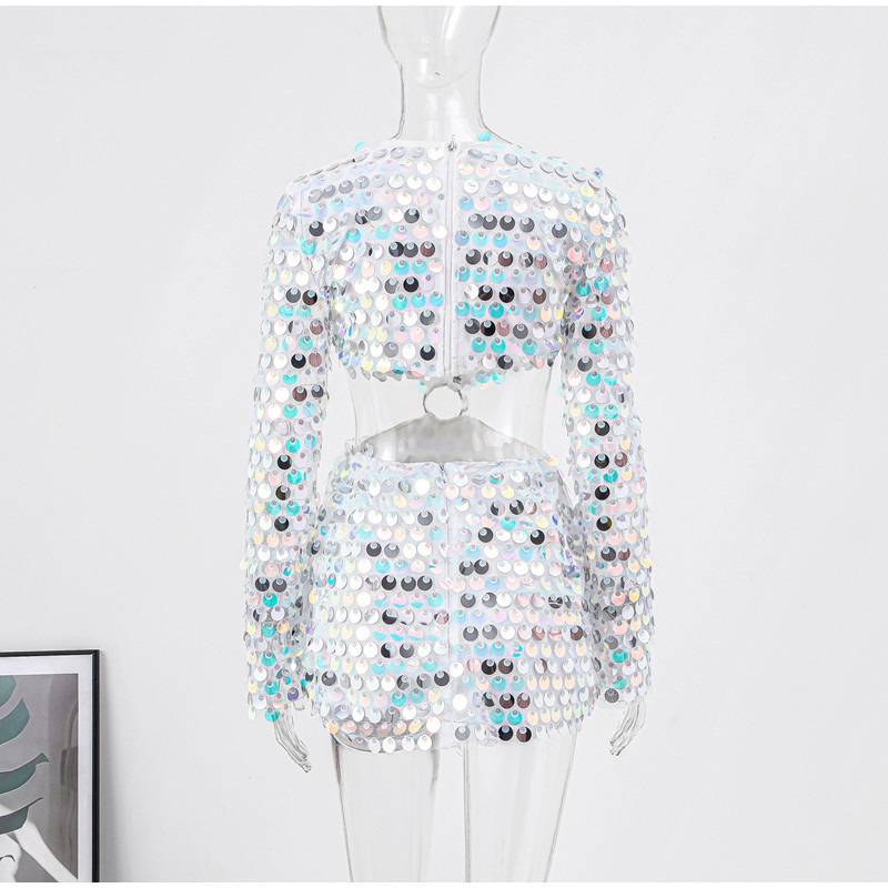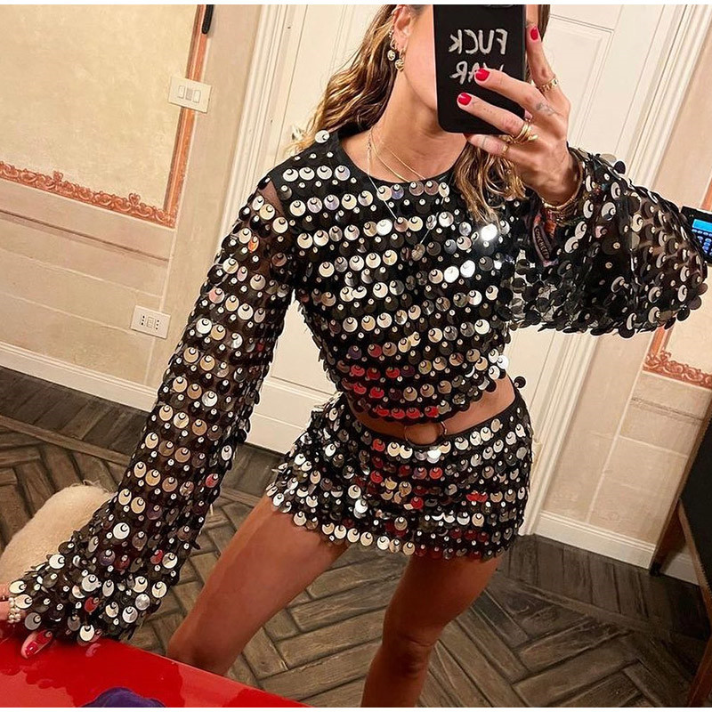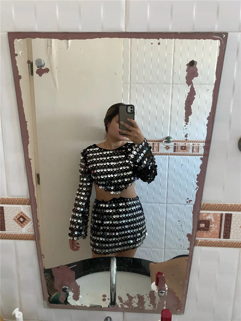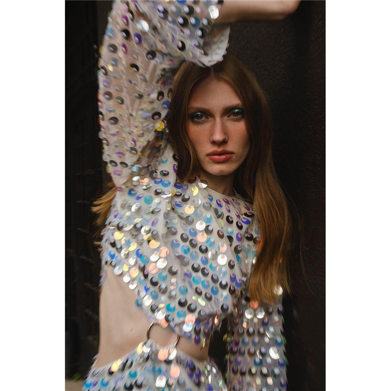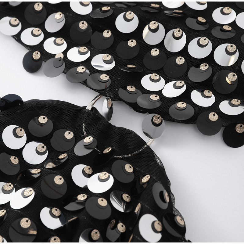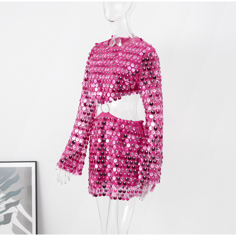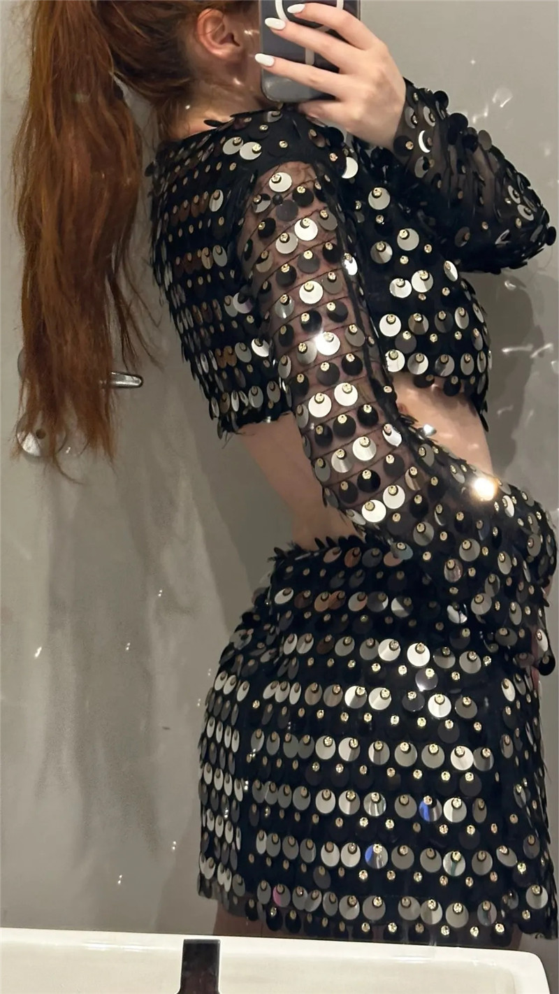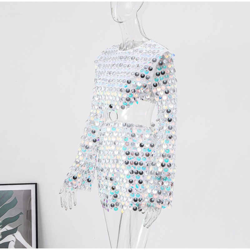 Sexy Design: Long sleeve hollow-out dress with sequins for a bold and stylish look.