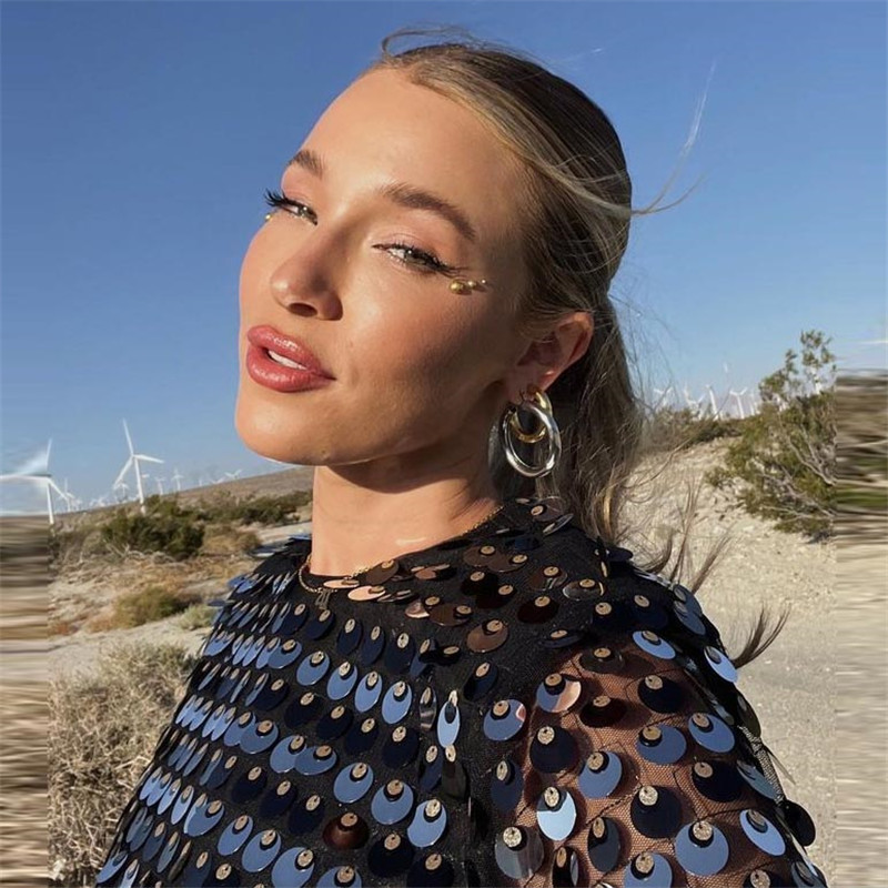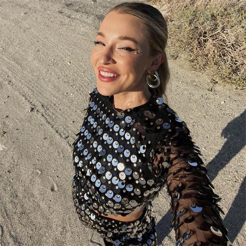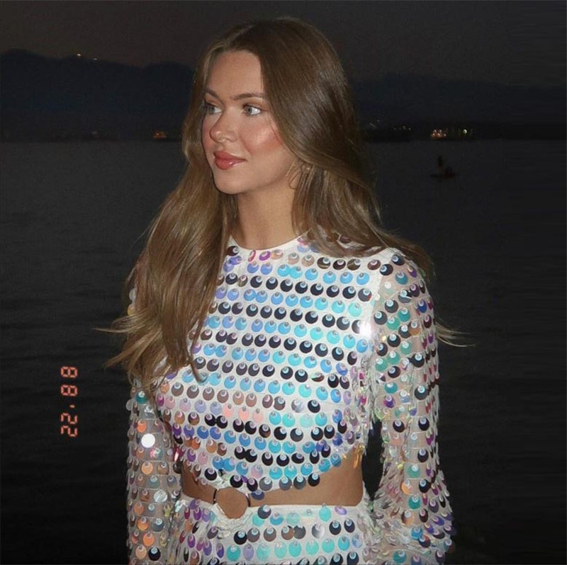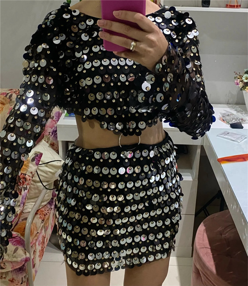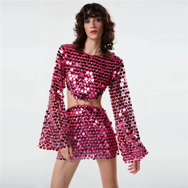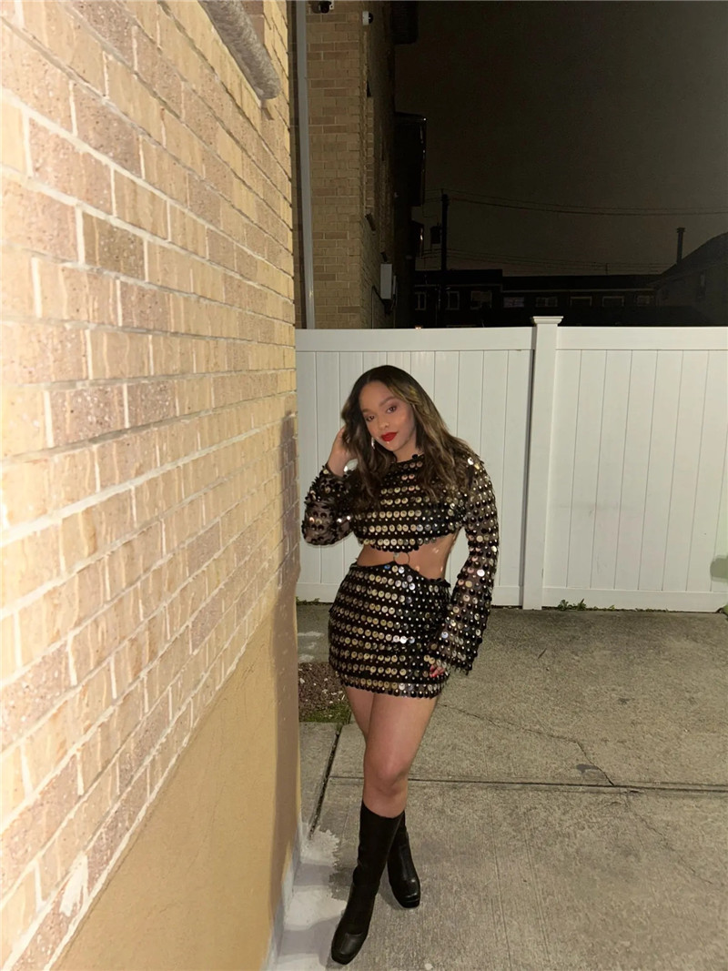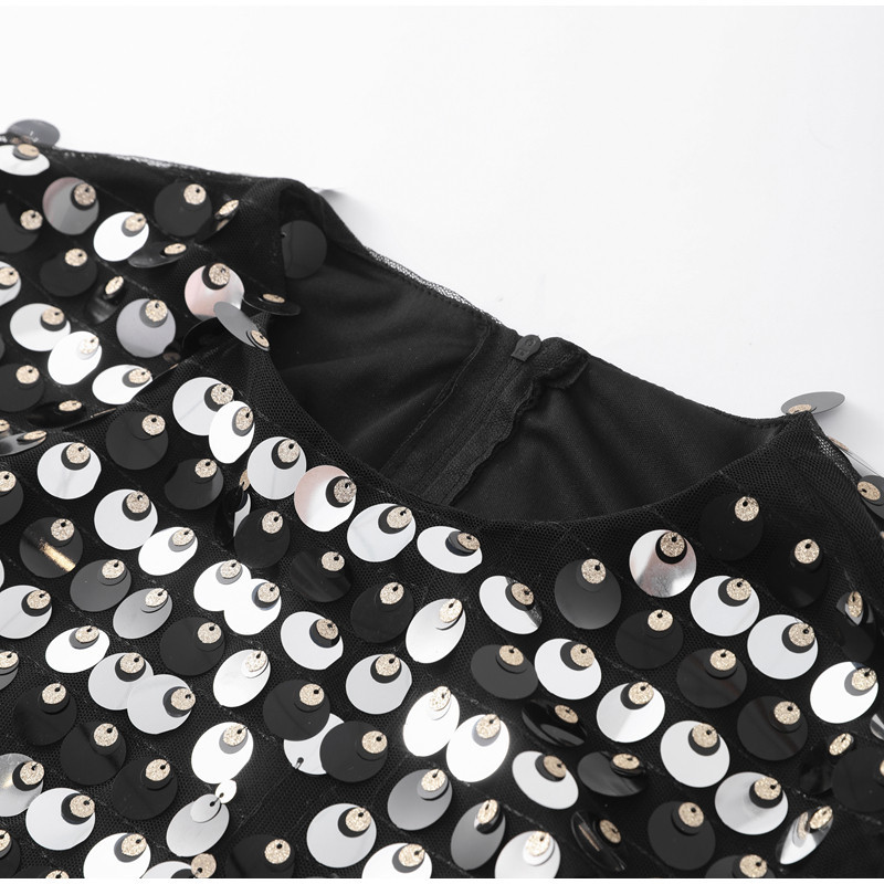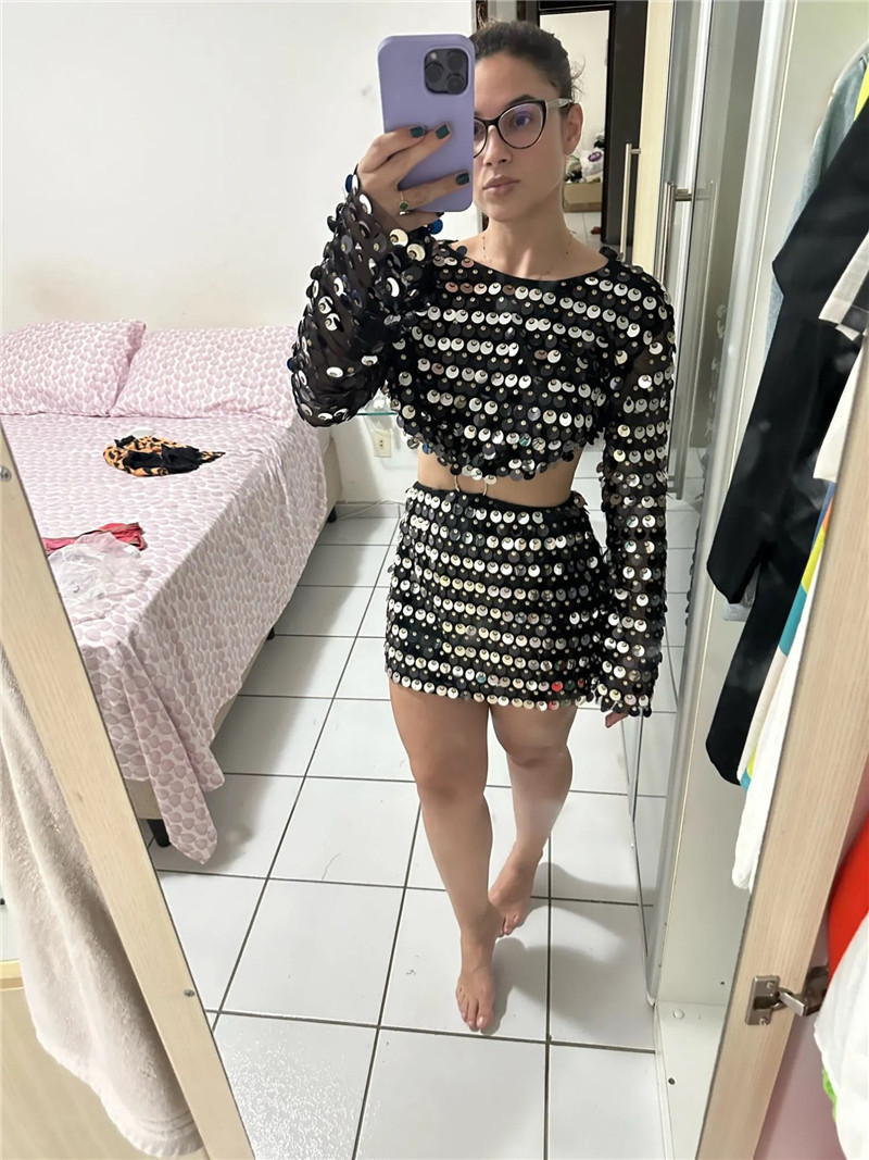 Sexy Design: Long sleeve hollow-out dress with sequins for a bold and stylish look.