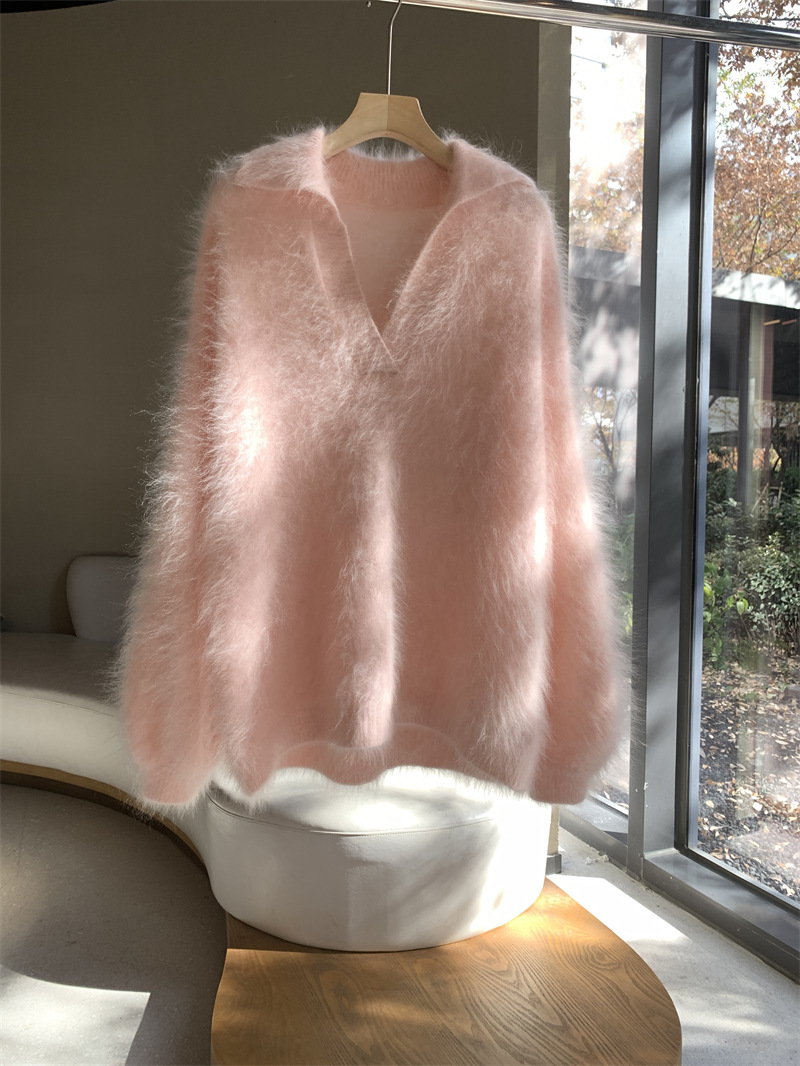 Saine Brushed Cashmere Sweater Women Polo Collar