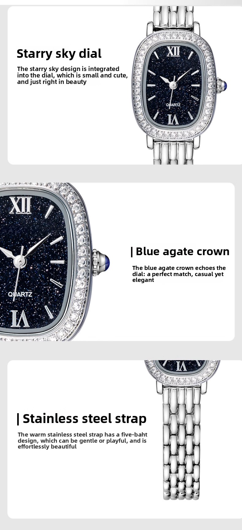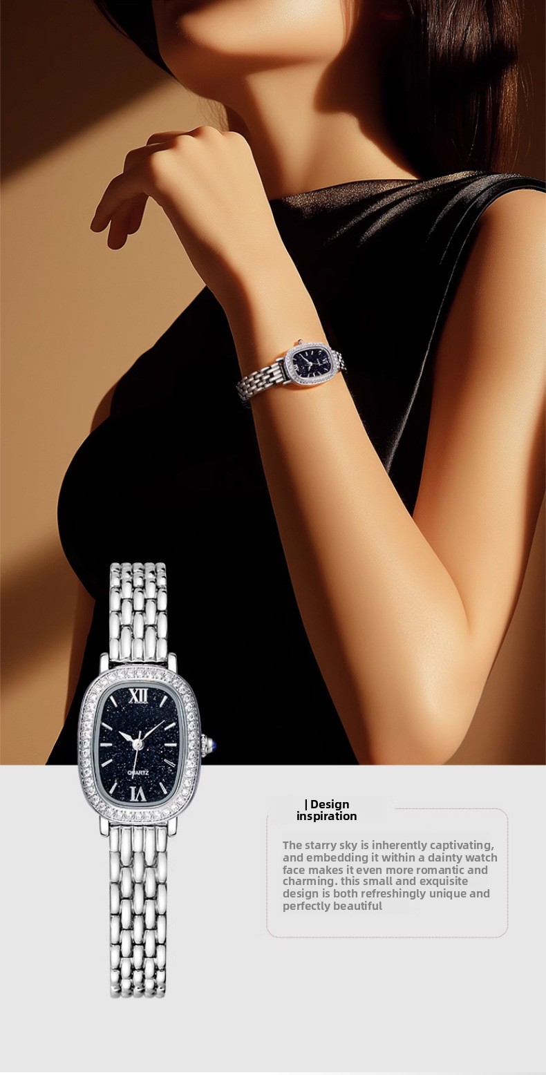 Elegant Design: Oval dial with starry sky pattern, fashionable and niche style for women