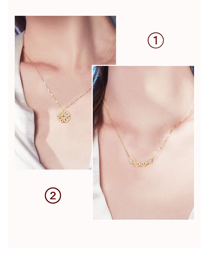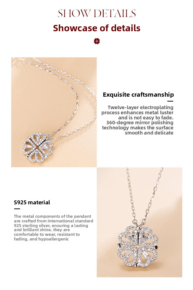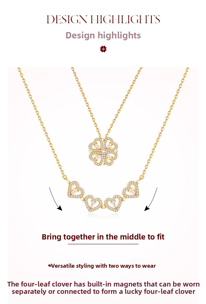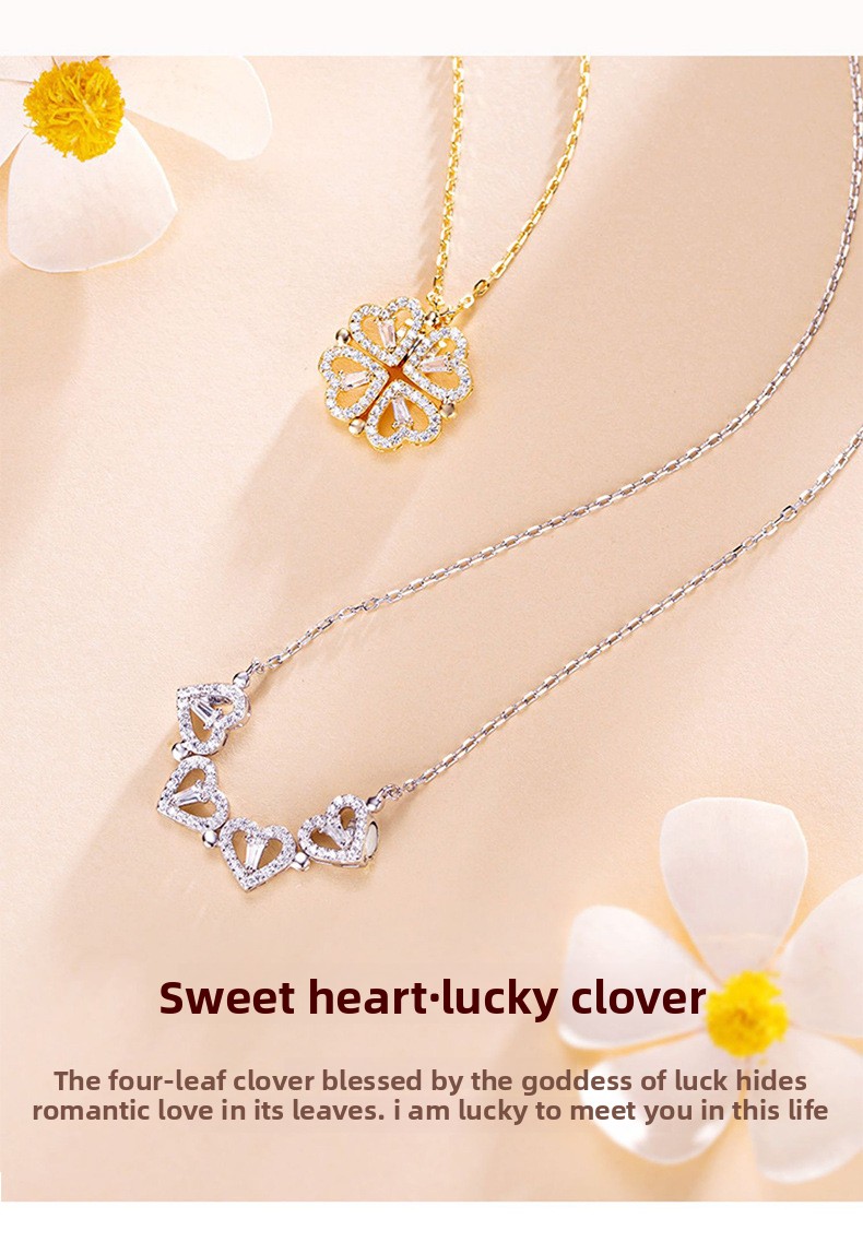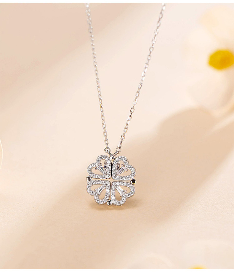 Sterling Silver Heart Clover Two-Wear Necklace