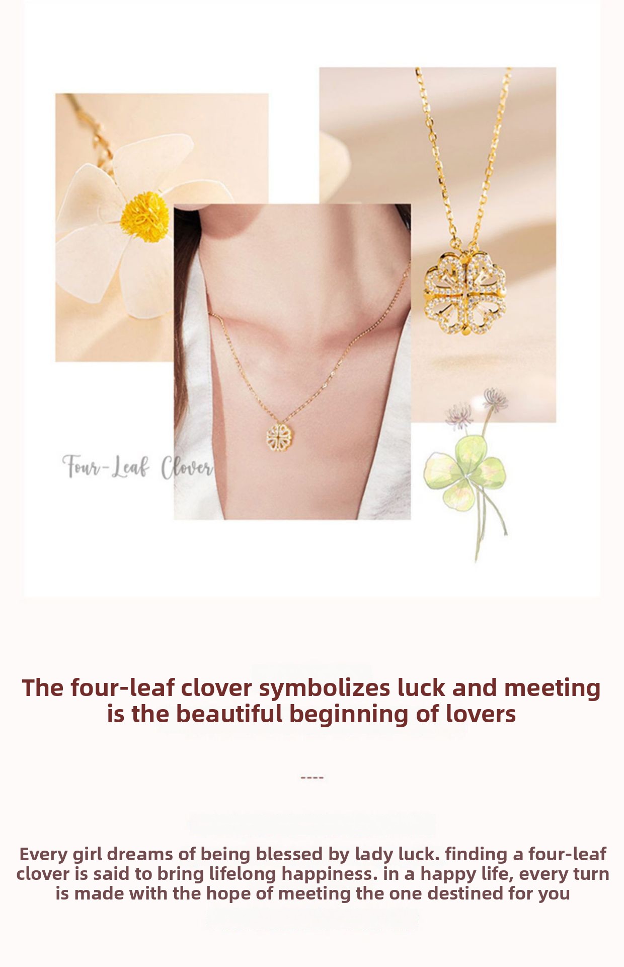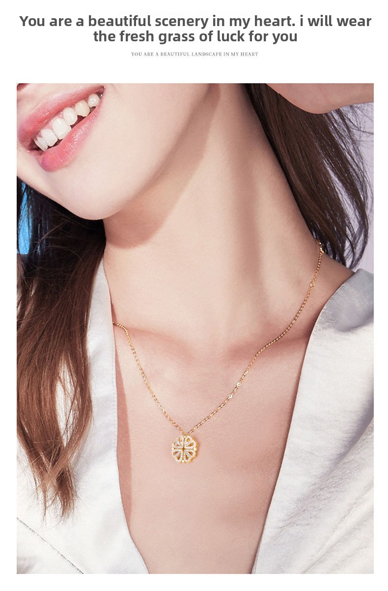 Heart & Clover Pendant: Elegant heart-shaped and four-leaf clover design with full diamond accents.