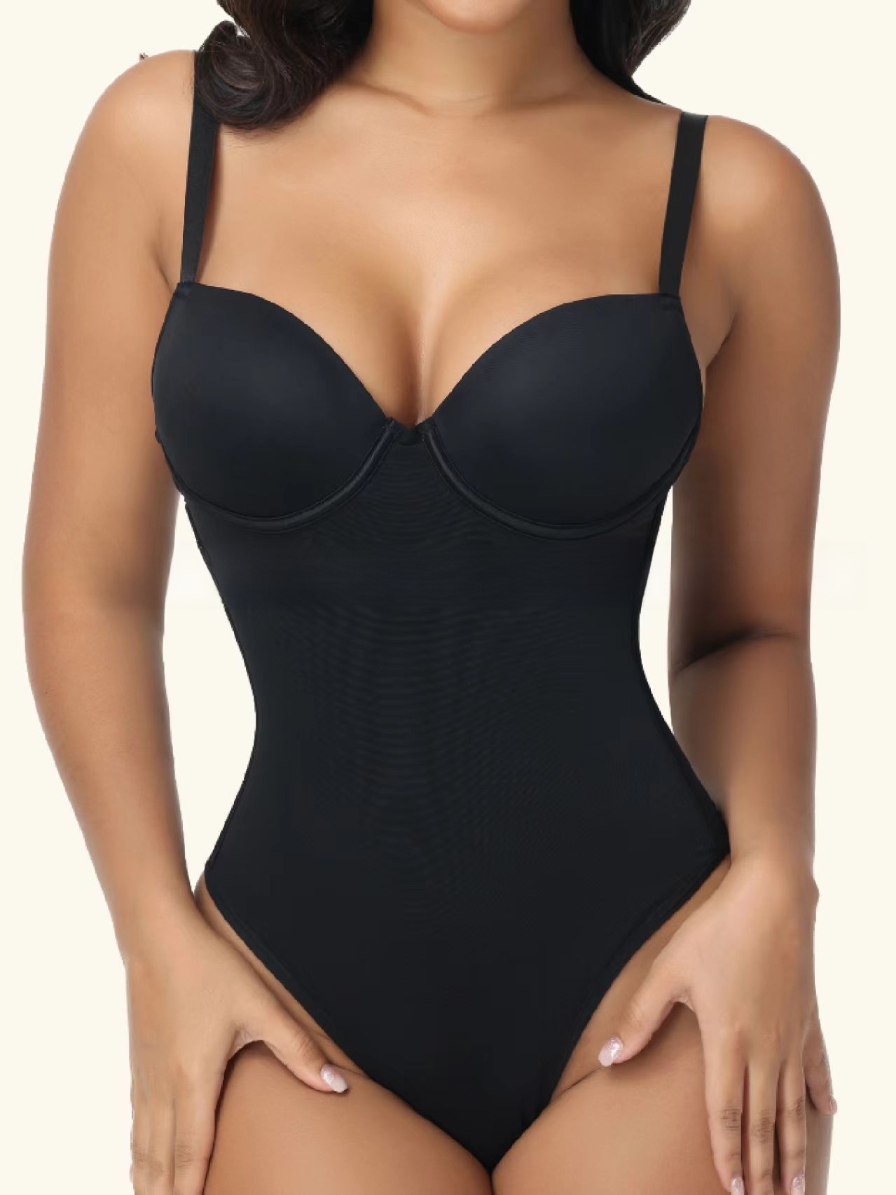 Smooth, sculpt, and support—this seamless shapewear bodysuit features built-in cups, tummy control, and breathable comfort for everyday confidence.