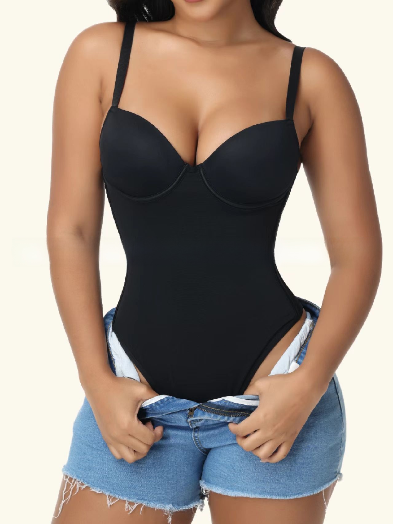 This women’s shapewear bodysuit with built-in cups is designed to enhance your figure with targeted compression and seamless comfort. Adjustable drawstrings help define the waist, while abdominal control, hip lifting, and bust shaping create a streamlined silhouette.
