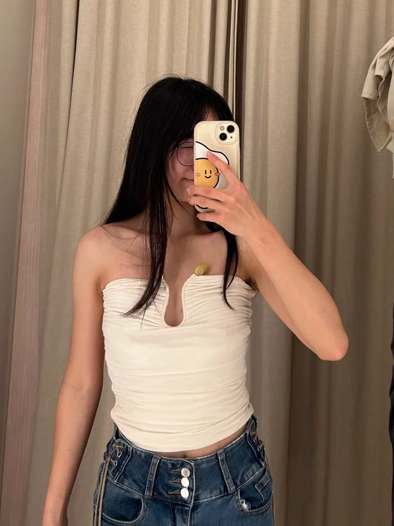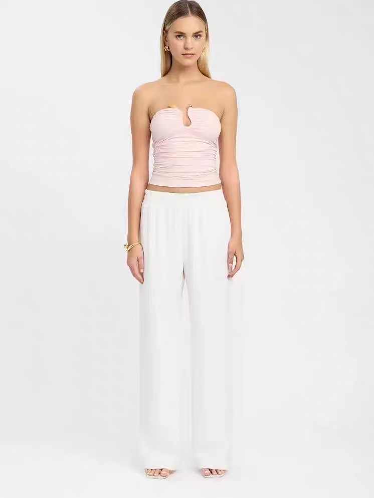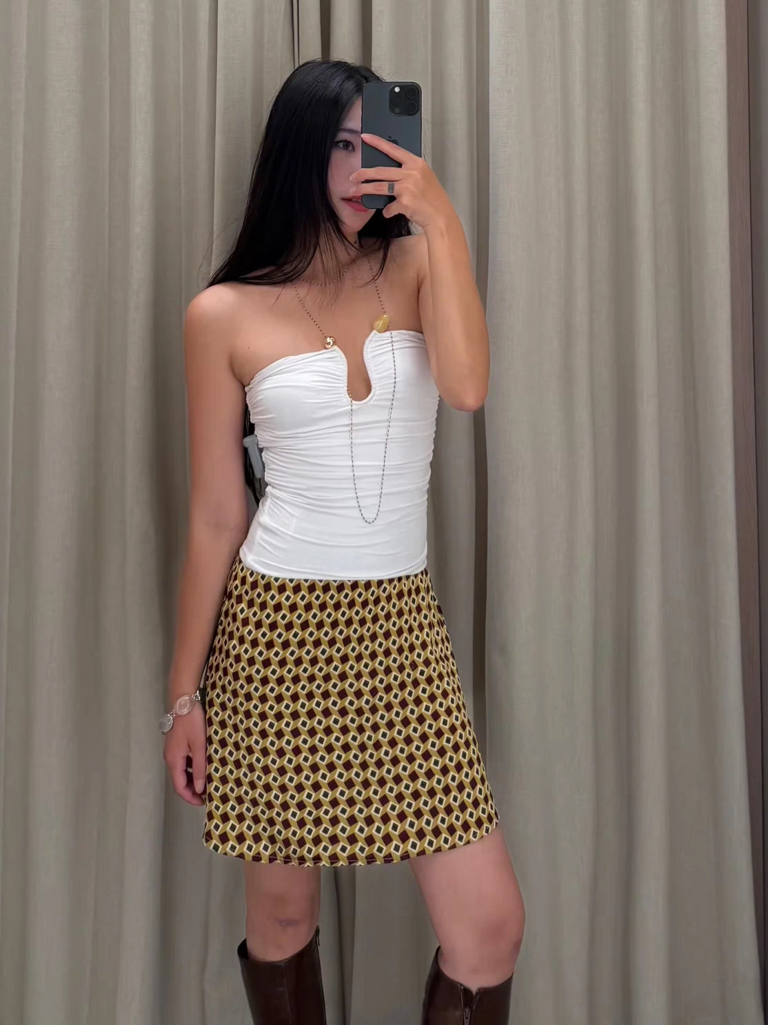 Elegant style: Strapless tube top with geometric patterns for a sophisticated look.