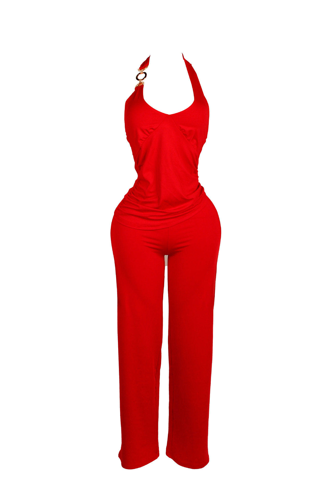 Stylish Design: Halterneck and lace-up details with metal pendant for a trendy look.